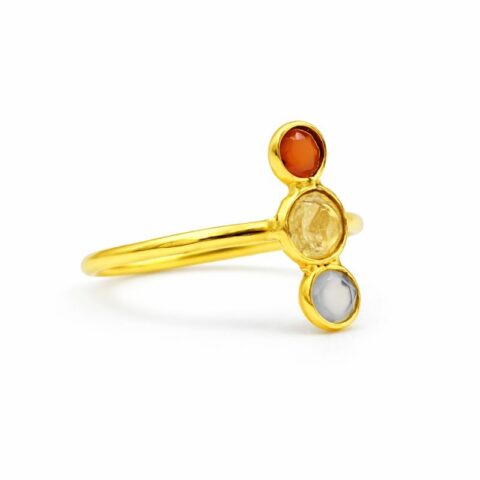 Red Onyx/citrine/labradorite Gold Plated Silver Ring