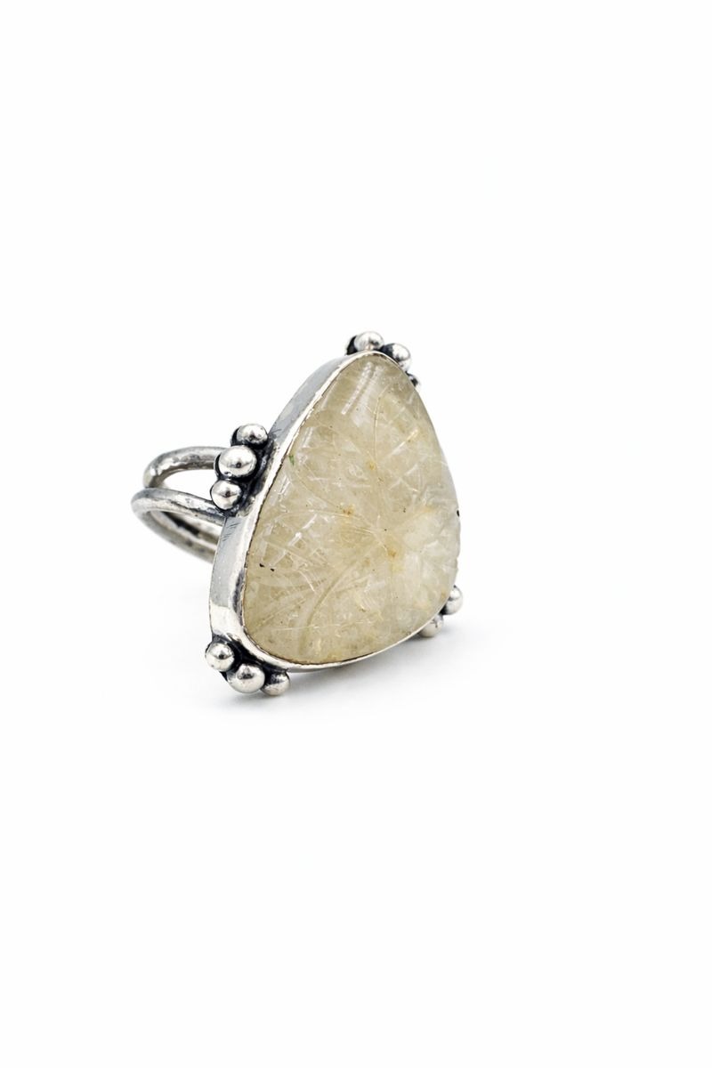 Golden Rutile Flower cut 925 Silver Ring