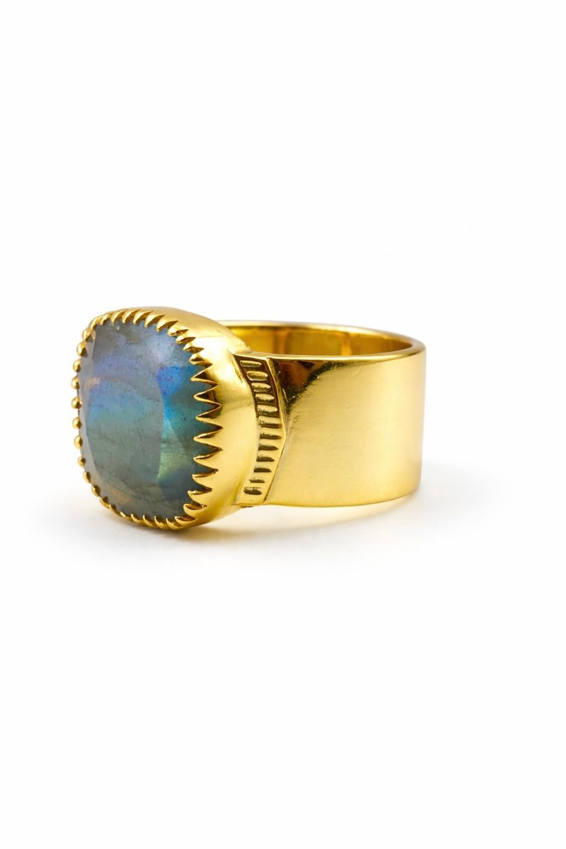 HANDCRAFTED GOLD-PLATED RING WITH LABRADORITE STONE